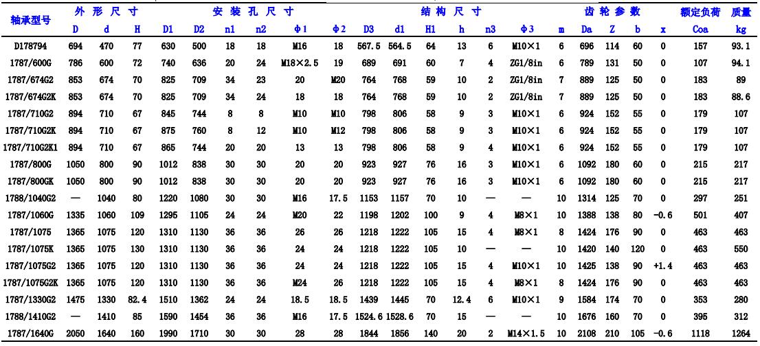 轉盤軸承根據不同的結構點可分別滿足各種不同負荷條件下工作主機的需求。其中,四點接觸球轉盤軸承具有較高的動負荷能力,交叉圓柱滾子轉盤軸承具有較高的靜負荷能力,交叉圓錐滾子轉盤軸承其預過盈能使軸承具有較大的支撐剛性和較高的回轉精度,三排圓柱滾子組合轉盤軸承由于把承載能力的提高引向軸承的高度方向,各種載荷又分別由不同滾道和滾子組承受,所以在同等受力條件下,其軸承的直徑可大大縮小,因而具有使主機更為緊湊的點,是種高承載能力的轉盤軸承。下面我們就以四點接觸球轉盤軸承為例給大家分享下其具體的型號,以便大家在選擇的時候能有個依據!