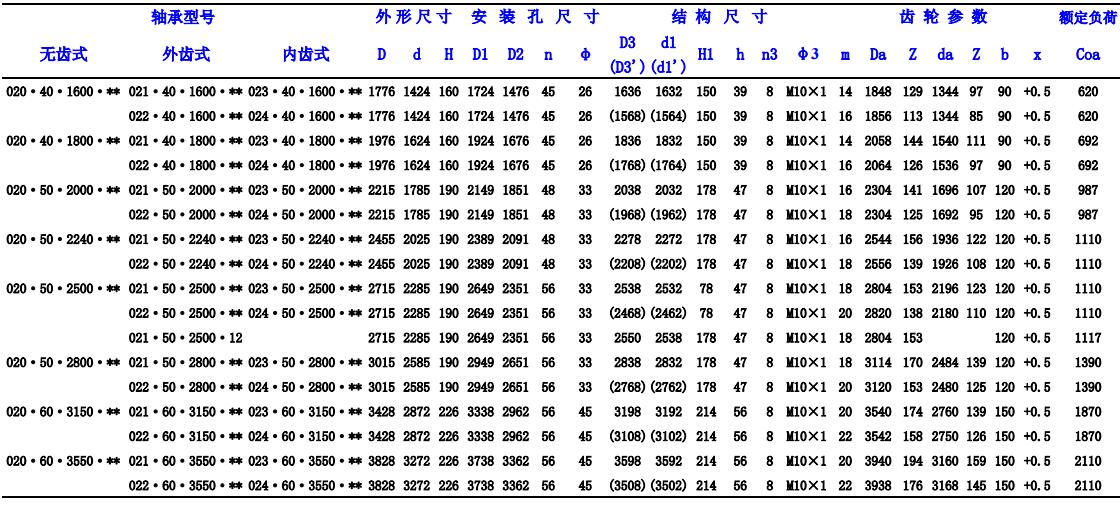 雙排球式轉盤軸承有三個座圈,鋼球和隔離塊可直接排入上下滾道,根據受力狀況,安排了上下兩排直徑不同的鋼球。這種開式裝配非常方便,上下圓弧滾道的承載角都為90°,能承受很大的軸向力和傾翻力矩。當徑向力大于0.1倍的軸向力時,滾道須殊設計。雙排異徑球式回轉支承的軸向、徑向尺寸都比較大,結構緊固。別適用于要求中等以上直徑的塔式起重機,汽車起重機等裝卸機械上。下面宜陽龍馬軸承有限公司就雙排推力角接觸球轉盤軸承的常用型號給大家詳細介紹下,希望對大家有所幫助!